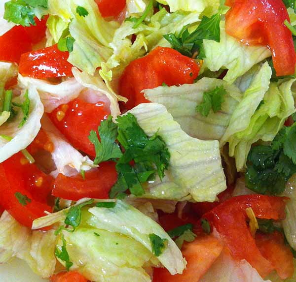Салат из помидор со свежими огурцами и болгарским перцем.