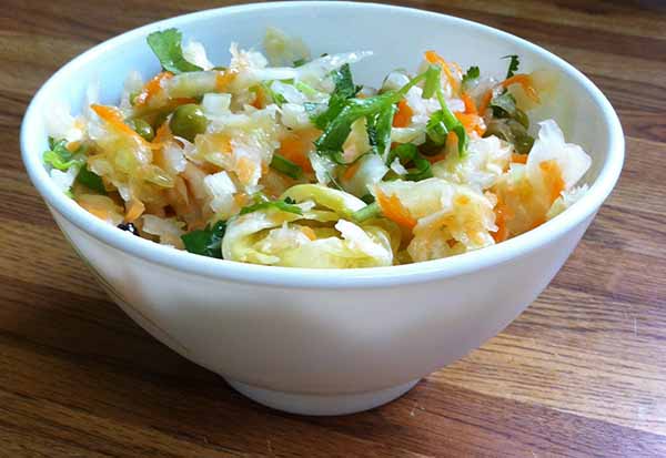 Винегрет из квашеной капусты с зеленым горошком.